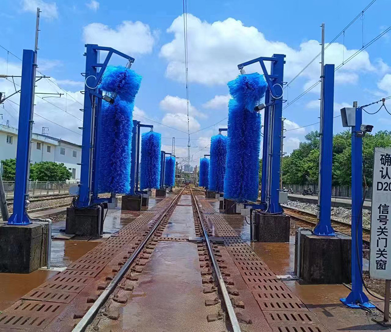 2、被清洗的污物主要是機(jī)車(chē)工作時(shí)累積和粘附在機(jī)車(chē)外皮表面的油泥、油垢、灰垢和動(dòng)物粘結(jié)物等,必須加裝洗車(chē)液計(jì)量泵噴灑洗車(chē)液,要求機(jī)車(chē)兩側(cè)面、兩個(gè)側(cè)頂弧面清洗干凈,
